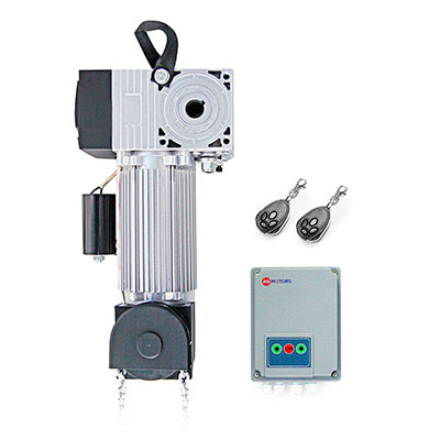 Электропривод с цепью ручного управления и набором кабелей, внешний блок управления CUID-230 встроенным радиоприемником, монтажный комплект.