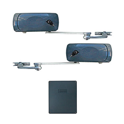 Состав комплекта: Электропривод рычажный 2 шт., блок управления со встроенным радиоприемником, монтажный комплект.