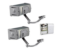 Эта прочная и мощная модель может быть оснащена шарнирным или скользящим рычагом, адаптируемым и размещаемым с учетом конкретных условий применения и установочных размеров ворот.