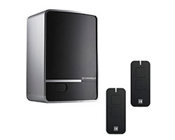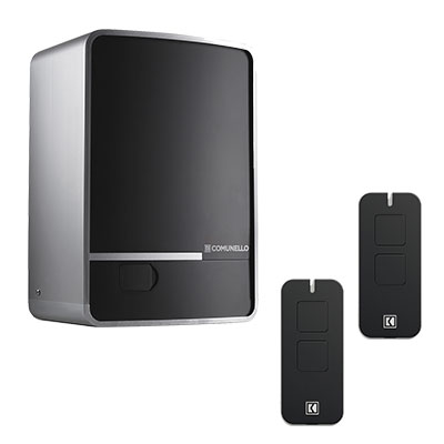 Электропривод со встроенным блоком управления, радиоприемник, два двухканальных пульта, монтажный комплект.