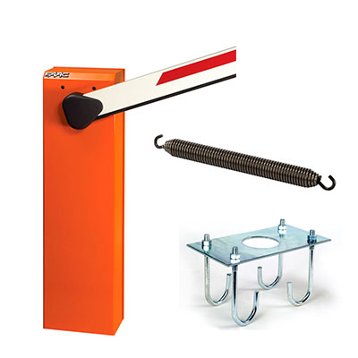 Комплект: Шлагбаум, стрела прямоугольная, крепление для стрелы, пружина балансировочная - 2 шт., пластина монтажная.