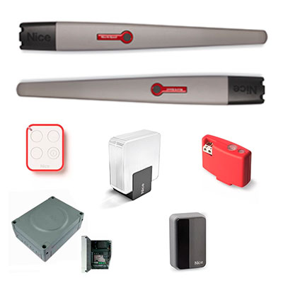 Привод TO6024HS - 2 шт, блок управления МС824H - 1 шт, приемник OXILR - 1 шт, фотоэлементы EPMB - 1 пара,  лампа ELDC - 1шт, пульт ON3ELR - 1 шт.