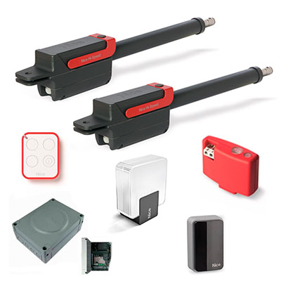 Привод  TTN3724HS - 2 шт, блок управления МС824H - 1 шт, приемник OXILR - 1 шт, фотоэлементы EPMB - 1 пара,  лампа ELDC - 1шт, пульт ON3ELR - 1 шт.