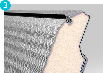 - Улучшенной прочностью. Места крепления саморезов утолщены и состоят из 4-х листов металла. Это предотвращает расслоение панелей при резком открывании.